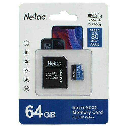 Найти - Карта памяти Netac MicroSDXC P500 Standard 64Gb U1/C10 + адаптер