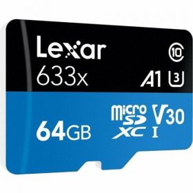 Карта памяти Lexar High-Performance 633x microSDXC 64 ГБ UHS-I W/R 100/45 C10 A1 V30 U3 с адаптером (входит в комплект).