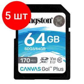 Найти - Комплект 5 штук, Карта памяти Kingston Canvas Go Plus SDXC UHS-I Cl10, SDG3/64Gb