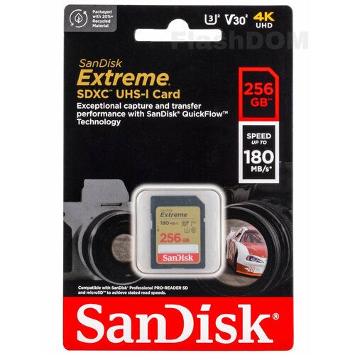 Найти - Карта памяти SanDisk Extreme SDXC 256 ГБ Class 10 UHS-I U3 V30 (R/W 180/130 Mb/s)