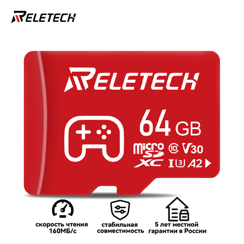 Найти - Карта памяти Reletech micro SD A2 64ГБ Для DJl Insta360 GoPro nintendo switch steam deck, красный