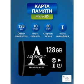 Найти - Карта памяти AXUSVOLT объемом 128Gb, microSD, Class 10, Full HD и 4K