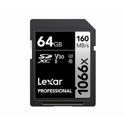 Оригинальная карта памяти LEXAR Professional 1066x SDXC UHS-1 U3 V30 64 ГБ.