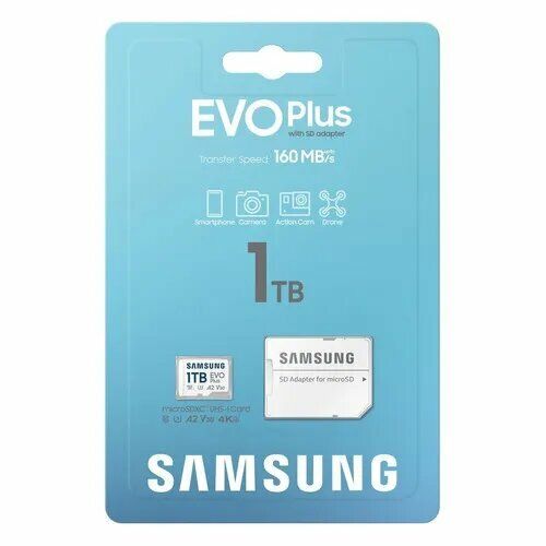 Найти - Карта памяти microSDXC UHS-I U3 Samsung EVO Plus 1024 ГБ, 160 МБ/с, Class 10, MB-MC1T0SA, 1 шт, переходник SD