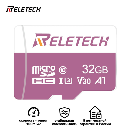 Найти - Карта памяти Reletech micro SD U3 A1 32ГБ Для Цифровая камера, камера наблюдения, дрон, регистратор вождения, розовый