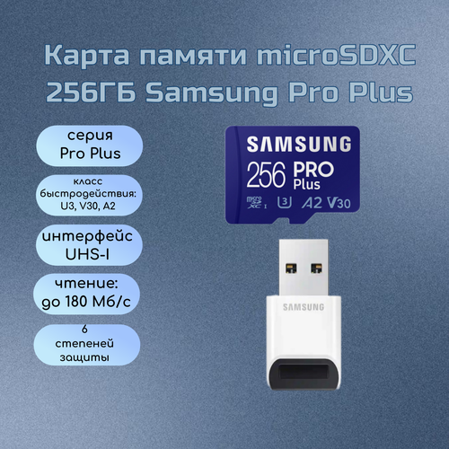 Найти - Карта памяти Samsung Pro Plus microSDXC 256 GB Class 10, V30, A2, UHS-I U3, R 180 МБ/с, с переходником на USB