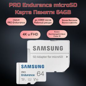 Высочайшая четкость изображения в формате 4K и поддержка формата FHD Кроме того, благодаря высокой скорости чтения/записи порядка 100/30 MB/s, карты серии Самсунг про Endurance позволяют быстро обрабатывать большие видеофайлы