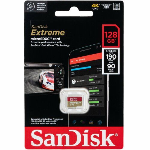 Найти - Карта памяти SanDisk Extreme microSDXC 128 ГБ Class 10 UHS-I V30 A2, 190/90 Mb/s