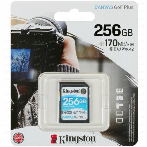 Карта памяти Kingston Canvas Go Plus SDXC обладает объемом 256 ГБ, обеспечивая хранение большого массива информации.