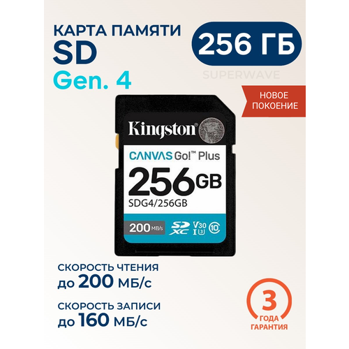 Найти - Карта памяти SD 256 ГБ Kingston Canvas Go Plus Gen.4 Class 10 (SDG4/256GB) UHS-I U3 V30 200 Мб/с