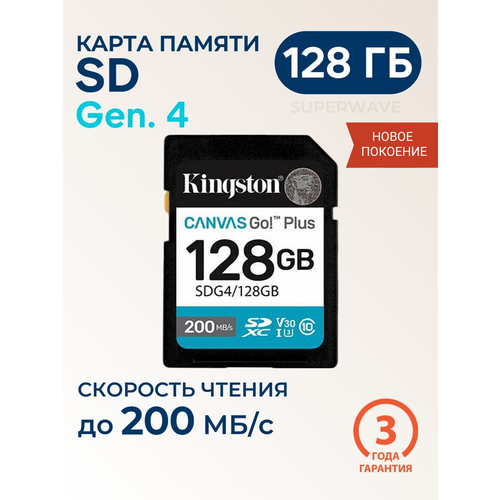 Найти - Карта памяти SD 128 ГБ Kingston Canvas Go Plus Gen.4 Class 10 (SDG4/128GB) UHS-I U3 V30 200 Мб/с