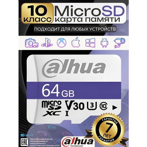 Найти - Карта памяти высокоскоростная флешка для телефона видеорегистратора видеоглазка камеры MicroSD 64 Гбайт DAHUA DHI-TF-C100/64GB