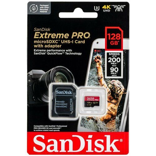 Найти - Карта памяти Micro SD SanDisk Extreme Pro 128GB UHS-I U3 V30 A2 (с адаптером)