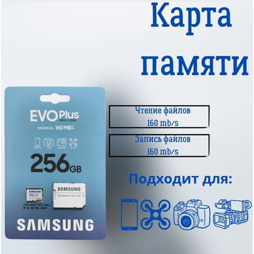 Найти - Карта памяти microSDXC 256Gb Samsung EVO Plus UHS-I U3 A2 + ADP 160 Mb/s NEW