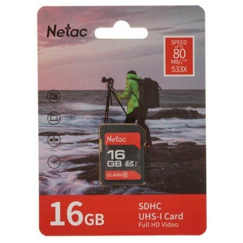 Карта памяти Netac SDHC 8 ГБ Class 10, V10, A1, UHS-I U1, R 80 МБ/с, 1 шт., черный 101268392149