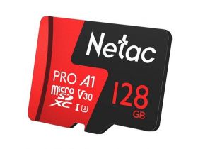 Карта памяти Netac microSDXC 128 ГБ Class 10, V30, A1, UHS-I, R 100 МБ/с, 1 шт., черный/красный 101282629389