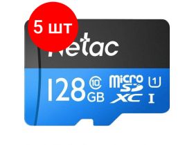 Комплект 5 штук, Карта памяти Netac P500 Standard MicroSDXC 128GB U1/C10 up to 90MB 102531053361