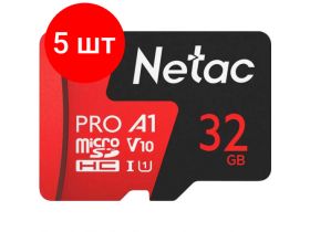 Комплект 5 штук, Карта памяти Netac MicroSD card P500 Extreme Pro 32GB, retail version w/SD 102531335652