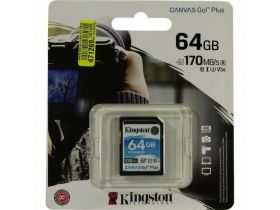 Карта памяти Kingston SDXC 64 ГБ Class 10, V30, A2, UHS-I U3, R/W 170/70 МБ/с, RU, 1 шт., черный 101282629363
