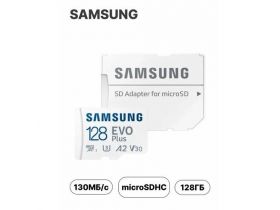 Карта памяти Samsung microSDXC 128 ГБ Class 10, V30, A2, UHS-I U3, R 130 МБ/с, адаптер на SD, RU, 1 шт., белый 101767867735