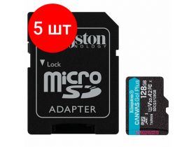 Комплект 5 штук, Карта памяти Kingston Canvas Go Plus microSDXC UHS-I Cl10 +ад, SDCG3/128Gb 102531171004