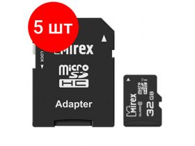 Комплект 5 штук, Карта памяти Mirex microSDHC с адапт 32Gb UHS-I/U1/class 10(13613-ADSUHS32) 102531147983