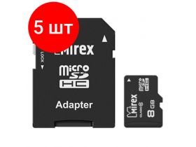 Комплект 5 штук, Карта памяти Mirex microSDHC с адаптером 8Gb (class 10) (13613-AD10SD08) 102531450787