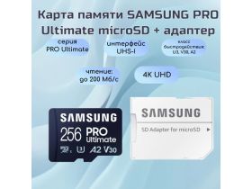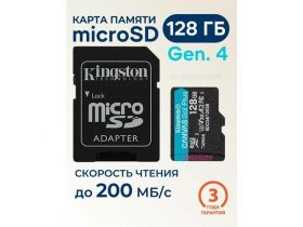 Карта памяти Kingston microSDXC 256 ГБ Class 10, V30, A2, UHS-I U3, R/W 170/90 МБ/с, адаптер на SD, RU, 1 шт., черный 100941676728