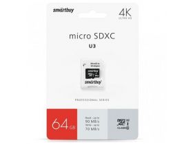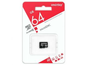 Карта памяти SmartBuy microSDXC 64 ГБ Class 10, UHS-I U3, R/W 90/70 МБ/с, адаптер на SD, 1 шт., черный 100938953210