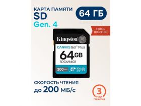 Карта памяти SD 64 ГБ Kingston Canvas Go Plus Gen.4 Class 10 (SDG4/64GB) UHS-I U3 V30 200 Мб/с 1242893531