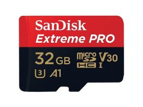 Карта памяти SanDisk microSDHC 32 ГБ Class 10, V30, A1, UHS Class 3, R 100 МБ/с, адаптер на SD, 1 шт., черный 1806587001