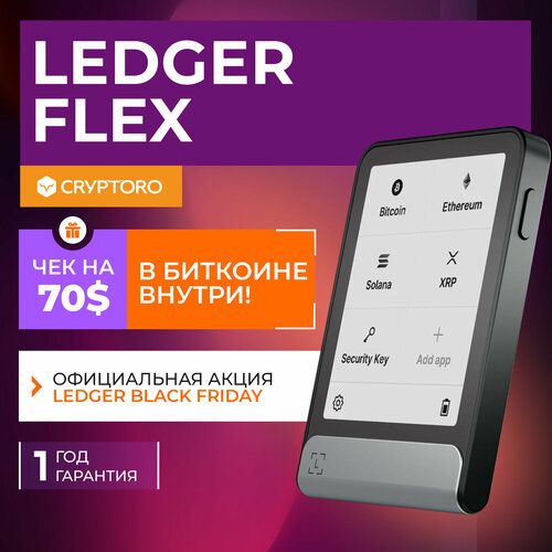 Ledger Flex for Crypto starter со стартовым депозитом в 70$ в BTC - это новейшее дополнение к линейке аппаратных кошельков Ledger, оснащенное первым в мире защищенным сенсорным экраном E Ink®. Устройство также поддерживает подключение к нескольким устройствам, что позволяет легко использовать его на iOS, Android и настольных системах.