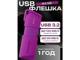 Флешка Kingston USB-накопитель DataTraveler Exodia M 64GB USB 3.2 NEON (PURPLE) фиолетовый 103612086459