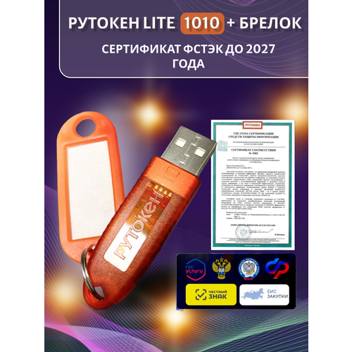 Найти - Носитель для электронной подписи (ЭЦП) Рутокен Lite 1010 128Кб для ифнс, ПФР с индивидуальным сертификатом ФСТЭК до 2027г + бирка для маркировки