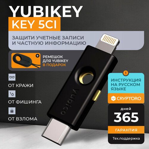 Yubikey 5Ci - это прочное и водонепроницаемое устройство аутентификации. Оно обеспечивает надежную защиту аккаунтов электронной почты, бирж и социальных сетей от несанкционированного доступа на аппаратном уровне. Устройство поддерживает подключение через разъемы Type-C и Lightning, что делает его идеальным решением для работы с устройствами IOS и Mac. Yubikey 5Ci обеспечивает мультифакторную аутентификацию без необходимости использования паролей с протоколами U2F, FIDO, OpenPGP, Yubico OTP и PIV. Кроме того, доступны и другие серии аппаратных ключей: Yubikey SK Series и Yubikey BIO.