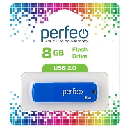 Накопитель USB 2.0 8Гб Perfeo C 05, синий незаменимый помощник хранения Вашей личной информации. Данная модель популярна и востребована на рынке USB флешек. C 05 обладает объемом в 8 Гб и интерфейсом подключения USB 2.0. Скорость чтения и записи данных накопителя является одним из лучших результатов в классе. Стандартный механизм разъема накопителя и материал корпуса – пластик, делают C 05 привлекательной и популярной среди покупателей различных возрастов.
