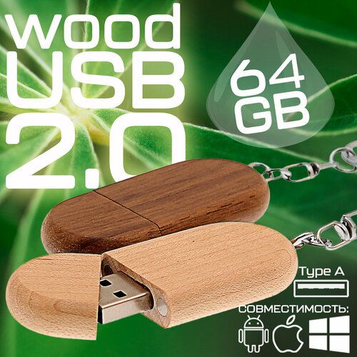 Деревянный корпус флешки выполнен из качественного материала, что обеспечивает долговечность и надежность в использовании. Овальная форма корпуса придает флешке стильный и современный вид.