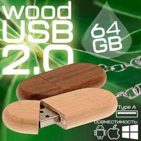Флешка выполнена в оригинальном дизайне и имеет деревянный корпус овальной формы. Магнитный колпачок обеспечивает удобство использования и защиту от пыли и повреждений.