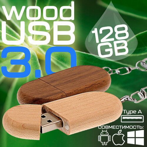 Найти - Овальная деревянная флешка с магнитным колпачком (128 Гб / GB USB 3.0 Красный/Red Wood1 Флеш-карта Овал)