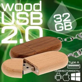 Деревянный корпус овальной формы и магнитный колпачок делают эту флешку не только стильным, но и практичным аксессуаром. Колпачок легко открывается и закрывается благодаря магниту, что обеспечивает безопасность ваших данных.