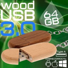 Найти - Овальная деревянная флешка с магнитным колпачком (64 Гб / GB USB 3.0 Красный/Red Wood1 Flash drive Верона Овал Verona Oval F17)