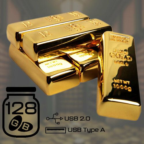 Нестандартный дизайн в виде слитка золота делает эту флешку уникальной и запоминающейся. Разъем USB Type-A обеспечивает совместимость с большинством устройств, включая компьютеры, ноутбуки, планшеты и смартфоны.
