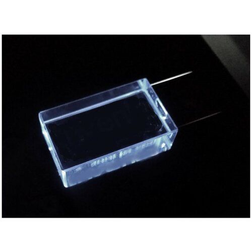 Флешка с прямоугольным кристаллом. Корпус металл и стекло. Указанный цвет товара означает цвет подсветки.