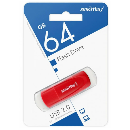 USB Flash накопитель 64Gb SmartBuy Scout Red (SB064GB2SCR) - это надежное и стильное устройство для хранения и передачи данных.
