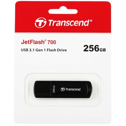 Флешка Transcend Jetflash 700, объём 256Gb, черный, пластик, интерфейс USB3.0, разъем закрывается колпачком (TS256GJF700)