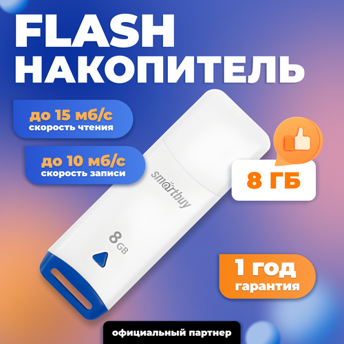 USB Flash накопитель 8Gb SmartBuy Easy White (SB008GBEW) - это удобное и стильное устройство для хранения и передачи данных. С его помощью вы сможете легко сохранить все необходимые файлы и всегда иметь их под рукой.