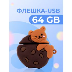 Найти - USB Флешка Pastila 64 GB для файлов и музыки / USB Flash накопитель / Подарочная ЮСБ флеш пямять для ноутбука, телевизора / Мишка с печенькой