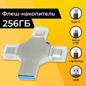 Найти - Флешка 256 Гб 4 в 1, Lightning, Type-C, USB, Micro, Внешний накопитель универсальный