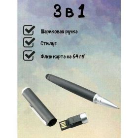 Перед вами стильная шариковая ручка со скрытой флешкой и стилусом. Это интересный и полезный аксессуар, который пригодится вам в работе, учебе - и как письменные принадлежности и как хранитель информации. Чёрная ручка представляет классический строгий стиль. Данная модель содержит в себе секрет – она имеет скрытый флеш накопитель. Это usb флешка с крутым дизайном - отличная идея для подарка. Карта флеш незаметно встроена в колпачок ручки, отделяется без особых усилий. Объем флешки 64 гб, что хорошо характеризует usb накопитель по соотношению цена - качество. Эффектная ручка со встроенной флешкой - прекрасный подарок и сувенир. Если вам нравятся крутые сувенирные ручки - это прекрасная идея. Красивая элегантная чёрная ручка – флешка usb удобна для работы в офисе, на деловых встречах, и других бизнес-мероприятиях. Пригодится ручка и в учебе - в университете, на семинарах и т. д. Сувенирная ручка может послужить превосходным подарком для тех, кто ценит стильные канцелярские принадлежности. Стержень в ручке легко меняется. Флешка 64 гб usb соединяется со смартфонами, компьютерами, колонками и другими устройствами, через юсб разъем, используя подходящий адаптер, например type-c, lightning, или другой. Может быть использована, чтобы смотреть и записывать видео, слушать музыку, сохранять информацию, работать в программах MS Office и других приложениях. Компактный размер делает флэш накопитель суперудобным и подходящим для использования и в машине, а объем памяти позволит записать на флешку достаточно большое количество музыки. Стильная подарочная ручка с USB флеш-накопителем станет прекрасным вариантом для креативного и интересного подарка. Подойдет на любой праздник – выпускной, последний звонок, юбилей, годовщину отношений, или презентом на другую памятную дату и просто подарок без повода. Ведь это высококачественный многофункциональный инструмент, который не только доставит владельцу огромное удовольствие от его использования, но и подчеркнет стиль владельца