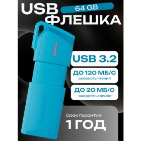 Kingston DataTraveler Exodia M 64 ГБ в неоновом голубом корпусе — это надежный и стильный USB накопитель, который подойдет для любых современных компьютеров и ноутбуков. Он обеспечивает быстрый и безопасный обмен данными и позволяет хранить большое количество информации.